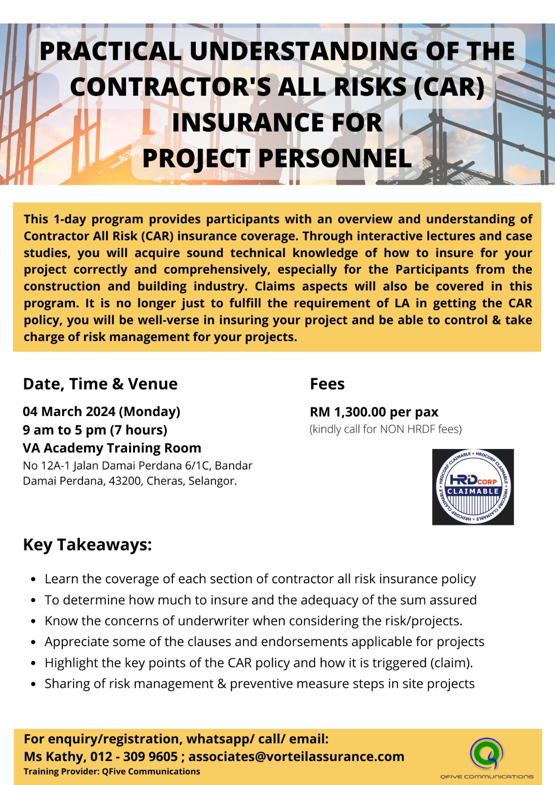 RM 850 per pax (under HRDCorp claimable training)